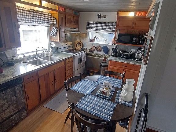 Two bedroom home total remodeled in 2023 kitchen even with stained glass lighting above cabinet industrial stainless aluminum backflash for stove with exhaust fan and exhaust Hood, extra microwave nook crock pot KitchenAid mixing counter space with cabinets, bathroom towel like finish with all matching porcelain accident Chrome faucets shelving and towel holders and towel racks with matching overhead light porcelain Chrome and walk-in shower bathroom floor heavy duty vinyl floor covering, wooden floors throughout house and kitchen, dishwasher and other kitchen nooks and modifications, also one bedroom has private computer desk filing cabinet and storage area with above TV and other amenities shelving above, public water and sewage gas hookups, outside storage shed work shop and storage, partially finished 3 car garage and half bath attach roof to finish. large yard or can be add extra lot with it's own utility hookups already own private lot excellent to build a brand new house on, included with fully functioning well also on lot making it all one acre lot.