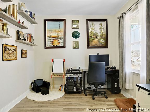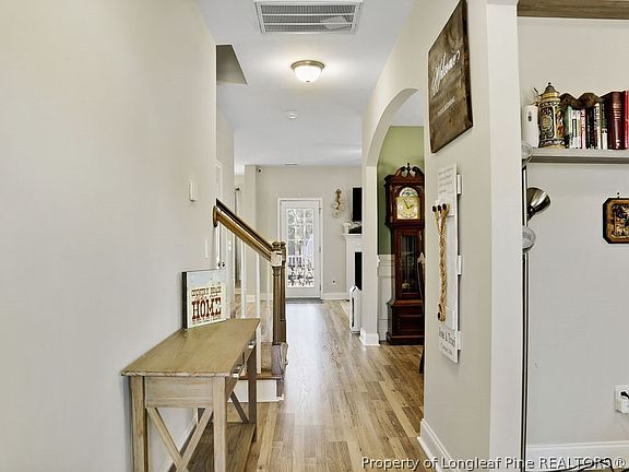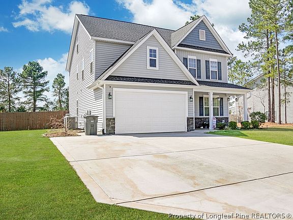 Do not miss this beautiful, lovingly maintained, one-owner McKee "Nelson" home full of upgrades in the desirable Sinclair community. Fantastic floorplan: 3 bedrooms with 4th room+closet upstairs, AND an additional flex space downstairs to become an office, playroom, or sitting area. Upgraded features include soft-close kitchen cabinetry that go all the way to the ceiling, quartz countertops, farmhouse sink, gas stove, "Christmas Light Switch" (see remarks). Whole home water filtration! The owner's suite with tray ceiling, double vanities, soaking tub, fully tiled shower and walk-in closet. Laundry is a breeze on the same floor as the bedrooms! 500 sqft third floor has been wired and lit for future finishing! Outdoors is a fully-fenced entertaining space with a scrnd porch, extended hardscaping with stone firepit & bench wall, established landscaping and garden, shed with loft storage. High demand location: minutes from Ft. Liberty; Moore County schools; nestled in a rural setting.