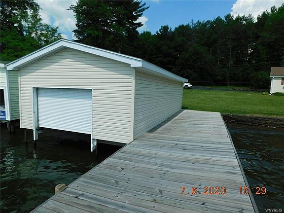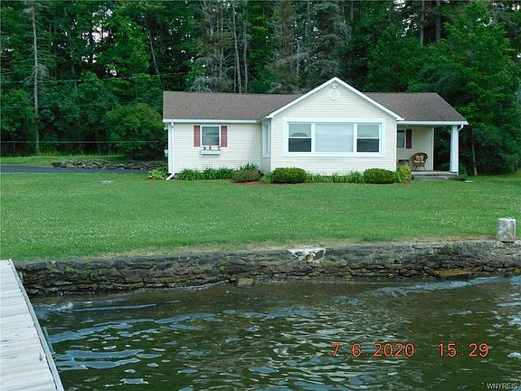 CUTE AS A BUTTON AND NEAT AS A PIN-Cuba Lake Cottage with private drive-shared with 3 cottage owners. Incredible views from every large picture window. Private quaint screened in room from retro kitchen - great place for early mornings or quiet evenings outside. Expansive lawn with 100 feet of water frontage - roadside lot includes .60 acres of deeded land, approx 197 feet of road frontage. Attached 2 car garage. Electric baseboard heat, new replacement windows, hardwood floors under loose laid carpet, washer/dryer in garage. Natural gas available at the road. Nice boathouse and extended doc. Clean, turn key, fully furnished and ready for a new owner to enjoy!