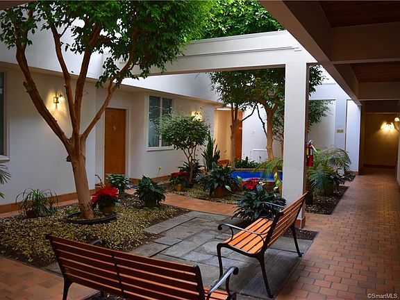 Rarely available stylish 3rd floor corner unit featuring soaring windows, hardwood floors and exposed brick and beam. The oversized master bedroom has a completely remodeled bathroom and an impressive large walk in closet. This unit also comes with it's own washer and dryer. Also relax in the 3 story atrium with water fountain or one of the 2 outdoor court yards. There is a red barn for outside storage, assigned parking and plenty of visitor parking. Conveniently located to FAST TRAK, I-91 & I-84. Walking distance to restaurants or train station.