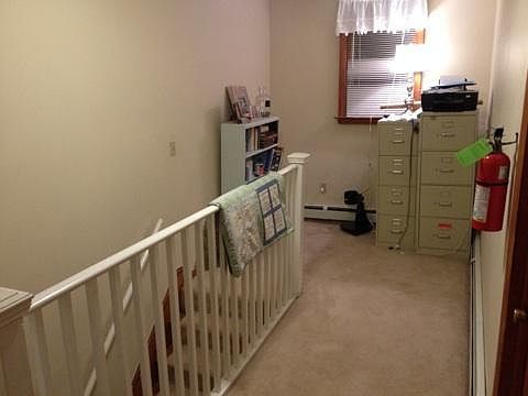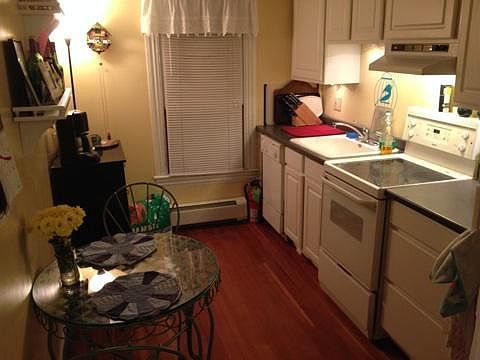 Great two bedroom apartment in house built in 1840. On part of second floor and all of third floor. One full bath with tub/shower in third floor. Good closet space for age of house, and additional storage in attic with pull-down stairs. Also, there's a shared shed, and room for a small garden. Decorative (non-working) fireplace with electric insert. Tenant pays electric, baseboard heat provided by landlord. No smoking and no pets in building. Off street parking for two cars. One year lease, 1 1/2 months security deposit. No pets, no smoking.