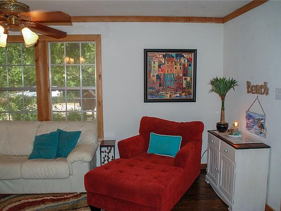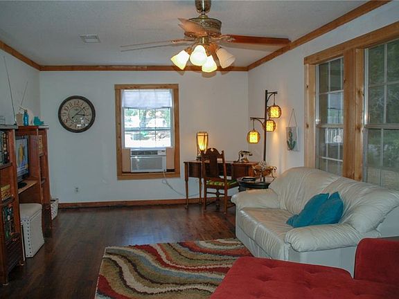 Doll house on large corner lot! Love has been poured into this precious home boasting huge shade trees, fully fenced with double gate for easy access. Real hard wood floors, custom cabinetry in kitchen along with original cabinets, nice large bath with claw-foot tub and step-in shower, ceramic tile, 3 inch baseboards, fresh paint, recent roof and HVAC with heat pump. Most windows have been replaced. Garage is perfect mancave workshop with full bath and sink, easily converted back to guest quarters. Won't last long. Washer, dryer, window unit and refrigerator remain. 1 Mile to Eagle Mountain Lake Marina.
