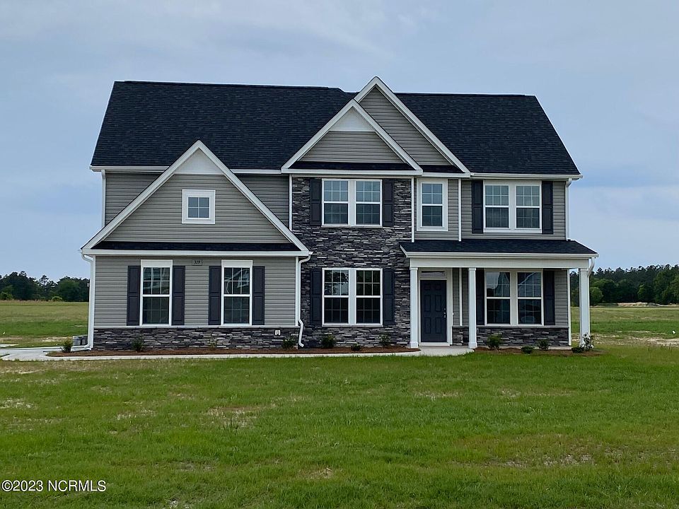 The Southport Plan by Dream Finders Homes. This spacious plan offers plenty of room for your family! The covered front porch leads you into the foyer which connects to the formal dining room has a coffered ceiling for added elegance, and an office space. The spacious kitchen with island opens to the family room. The first floor is finished off by a full bathroom and bedroom. The second floor features a spacious master suite with a large walk in closet. Two bedrooms upstairs share a full bath with dual sinks. The second floor is completed with a Bonus Room, Sitting Room and laundry room. Convenient location to Pinehurst and Fort Bragg on a 2.5 acre parcel.