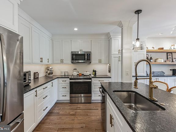 Welcome to 319 Rocky Court West, one of Chalfont’s hidden gems in the Rocky Meadows neighborhood. This home is conveniently located close to shops, restaurants, commuter routes, and parks yet still tucked away from the hustle and bustle. This home has been renovated from top to bottom and inside out. See the list of upgrades in the MLS. This end-unit townhome has lots of space and is a breath of fresh air as soon as you walk in the door. Step in the foyer and head to the upper level. You’ll find a bright and open concept living space with tons of natural light and recessed lighting. Gorgeous wood floors flow throughout the space. The kitchen’s white cabinets have beautiful pulls, and the island features a gorgeous sink and room for three additional bar seats. Stainless steel appliances and plenty of cabinetry are a chef’s dream. There is more storage in the stunning built-ins by the adjacent dining area. Simple and elegant light fixtures brighten up these dining spaces, which also lead directly out to the deck for easy entertaining. The living room has a cozy wood burning fireplace, with a stone front and gorgeous wooden mantel. Crown molding ties these spaces together nicely. Head down the hall to the primary suite, a calm retreat with a recently renovated ensuite bathroom. Two more bedrooms and another full renovated bathroom complete this level. The ground floor has access from the garage and includes a laundry room and half bathroom with wide plank tile floors. There is a storage area with a window that could be finished and converted into another bedroom. An additional living space features glass doors that lead to the paver patio. The backyard is perfect for entertaining, with plenty of room on the upper deck and patio for grills, tables, chairs, etc. You’ll have more grass space than the other townhomes in the neighborhood as an end unit, and the house backs up to trees. A large two car garage and driveway provide parking for up to four cars. This townhome won’t last – schedule a showing today!