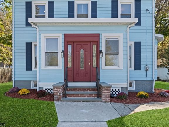 Step into timeless country elegance with this beautifully maintained circa 1900 residence, where classic charm meets refined design. The custom mosaic foyer introduces a sense of artistry and connection to nature, setting a warm and welcoming tone. Every element has been thoughtfully curated from imported wall murals to a bow window accented with golden flakes, designed to capture sunlight and create a captivating glow throughout the space. On the first level, find a gracious living room featuring a refurbished fireplace frame wrapped in a premium handcrafted mural, a subtle nod to the home's original hearth. A formal dining room with original built-in shelving and glass doors offers both charm and function, while a plush carpeted center staircase gracefully separates the two spaces. The main level also features a full bathroom, a convenient laundry area, and a tastefully updated kitchen that honors the home's heritage with original high-quality cabinetry, modern brushed gold hardware, and stainless steel appliances. Upstairs, find three bedrooms framed with distinctive moldings that lend each space its own personality, along with a second full bath showcasing floor-to-ceiling porcelain and minty glazed ceramic tiles. Outdoors, a charming playhouse with its own mailbox adds to the property's unique appeal and countryside character. With artistry, craftsmanship, and the spirit of Great Meadows woven throughout, this home offers a serene retreat ready to be cherished.