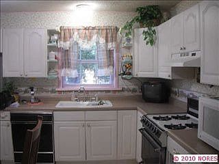 Cute house wiht a large, updated kitchen with newer cabinetry. Some hardwood floors, clean with very little work needed. Vinyl siding, large yard, 3 bedrooms and indoor utility room.