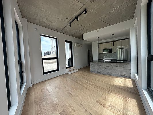 This is a sunny and open 2 bedroom 2 bathroom apartment located in the heart of Williamsburg in a beautiful new boutique building. To say this unit is luxurious may be an understatement because it is brimming with sleek design, modern appliances, spacious rooms, and closet space for days. The kitchen and main living area is expansive with a very large, modern island that has a sink and dishwasher attached to it. The unit also features a private terrace that has a gorgeous view of Williamsburg in addition to a substantial amount of square footage. The building itself features all of the modern amenities and securities you would need such as a virtual doorman, package room, and bike room. You have access to a very big roof deck equipped with lounging furniture and an expansive view of Williamsburg. The building has a big parking garage available for tenants that also feature electrical charging ports for those with E-cars. The neighborhood speaks for itself! Williamsburg, year after year, has continued to be the premier Brooklyn neighborhood to live in and the amount of great bars, restaurants, and music venues are testament to that. You also have the J,M,Z lines literally a step outside the front of the building for easy access to the city. Reach out to schedule an in person viewing!