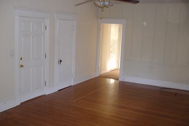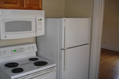 This second-floor unit is in a 4-plex building and has hardwood floor in the living room/dining room, carpet in the bedroom and hall and vinyl in the bath and kitchen. Heat is paid by landlord. There are ceiling fans in the living room, bedroom. Mini-blinds are furnished. Kitchen includes all major appliances, including self cleaning oven, frost-free refrigerator, dishwasher and over-the-range microwave. Laundry hook-ups are in the basement; coin washer and dryer are available if desired. Off-street parking. Shared porch in front, large shared porch/deck in rear. Apartment will be ready April 1 and possibly sooner. Call (502) 895-2754 or (502) 386-5659 to make an appointment.
