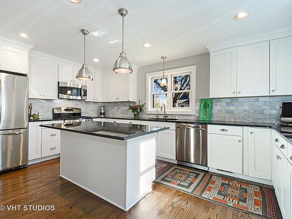 Quintessential Barrington: Idyllic Village home in such a great location is just steps to Metra, local coffee, shopping & dining, Farmer's Market's & more! This updated, move-in ready home is filled with charm & character, beautiful bay windows, gorgeous original millwork, impressive 9' ceilings & glistening hardwood floors throughout. Pretty newer white kitchen w/granite, SS appliances & large island opens to a spacious dining area, and side porch entry. Bright & light filled has great spaces for everyday living & entertaining, living room w/built-ins, cozy family room & heated front porch. 1st floor bedroom option w/full marble bath, laundry/mudroom, home office. Master w/his & hers closets, cozy sitting room & marble bath double vanity, tile shower & walk-in closet. Appliances & dual zone HVAC all less than 5 years old & recent exterior upgrades inc., NEW: driveway, roof, insulation, landscape w/bluestone walkways/patio & entry stairs and picket fence! Blue Ribbon Hough St. School!