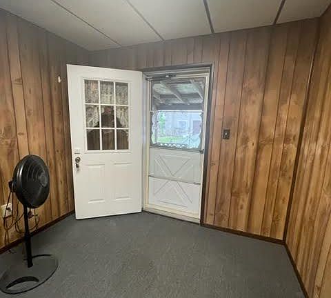 Nice 2 bedroom half double with paved off street parking. Maintenance free exterior includes metal roof, vinyl siding & replacement windows. Front porch and large covered rear patio. Fenced in back yard with 2 sheds provides security and storage. All appliances and window treatments are included. Excellent opportunity for a low cost home or as a rental unit.