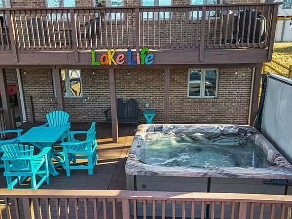 ULTIMATE ENTERTAINING w/ MANY LAKE LUXURIES! FUN inside & out at every turn w/ beautiful panoramic lake views! MAGNIFICENT sunsets! Wonderful open entertaining layout w/ an extra room down! HOT TUB remains! Easily launch Pontoons or fishing boats from the large private boat ramp! Peaceful swimming area w/ zero entry! Gentle slope and with cleaned bottom to enjoy w/ guests on the shallow end & gradually deepens towards floating dock w/ drop-down ladder! The upper and lower decks are perfect for grilling and outdoor meals! The heated tandem garage (not included in htd tot) stores fishing equipment, lake toys, lawnmower, jet skis and a vehicle or 2! The following REMAIN - Outdoor speakers/Dining table w/ stools & bench/refrigerator/electric range/microwave/bar chairs/Kenmore washer/dryer/downstairs refrigerator & wooden slatted cabinet/Sony stereo Bluetooth/DVD player/Outdoor Speakers/TV/Foosball table! + an Option for COMPLETELY FURNISHED for a nominal fee. Pre-approved welcome!