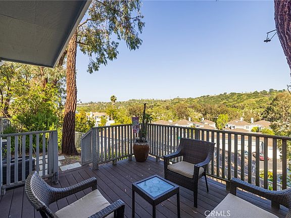 Enjoy the highly sought after Laguna Beach lifestyle and school district here in Laguna Terraces. This property features cathedral ceilings, skylights, and panoramic views throughout plus a small yard to supplement the outdoor deck. The main level has beautiful honed French limestone flooring. The kitchen, overlooking the dining and great room, is complete with upgraded cupboards and stainless steel appliances. Upgraded double French doors lead to the serene deck and yard. This two-bedroom home includes a primary room with views and a large bathroom retreat with dual sinks and a large jacuzzi tub. The second bedroom is en-suite. Parking includes 2 garages, a direct-access 1 car garage complete with laundry hookups plus a separate enclosed 1 car garage. HOA amenities include 2 pools and spa and outdoor cooking area. Centrally located in the Canyon close to hiking trails, shopping, world class restaurants, and within the Laguna Beach school district. Enjoy easy commuter access to toll roads, freeways and beach cities.