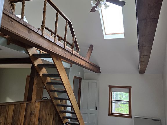Imagine falling asleep under the stars to the lull of a whipple will or waking to a beautiful sunrise and the sound of neighing horses. This could be yours in this one bedroom loft apartment over a 2 car garage. The house in Northfield NH is in a rural countryside yet minutes to I93, Highland bike park, Concord NH and a 10 minute walk to Sandogardy pond where you can launch your canoe or kayak and paddle peacefully. The cathedral ceiling can accommodate that tall Christmas tree you always wanted. The rustic beams become a haven for plants that flourish under the sunlight from the skylight windows. A cozy kitchen is equipped with a refrigerator, gas range and microwave with room for a small dinette that will sit in front of the windows overlooking the chickens, gardens and backyard full of wildlife. Enjoy the picnic area and share a campfire with the landlords. $1800 per month due on the 1st with a $50 discount if paid by 5pm the previous day. Call for showing appointments. Owner pays all utilities except electricity. Heat and cooking range are propane fuel.