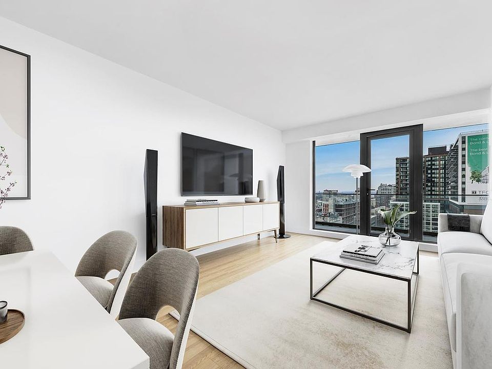 Beautiful Development with 15 year tax abatement! Residence 18B is a magnificently designed two-bedroom, two-and-a-half bathroom apartment with private terrace and pouring natural light. This high-floor unit is complete with 6 wide plank oak floors, Bosch washer/dryer, ample closet space throughout, and an efficient central A/C and heating system. The kitchen features top-of-the-line appliances including Canadian white oak veneer lower cabinets, white lacquered upper cabinets, Caeserstone frosty carrina quartz countertops, stainless steel undermount sink by Signature, chrome faucet, and Bosch appliances. In addition, the master bedroom suite contains a separate master bathroom completed with a walnut veneer vanity with pure white caesarstone quartz countertops, Signature plumbing fixtures, and an undermount Signature bathtub. The Nevins is a Luxury Condominium offering 24- hour Doorman and Concierge Services, Package Room, State of the Art Fitness Center, Residents Lounge Designated for Entertaining, Kid's Playroom, Bicycle storage and Private storage, Rear Outdoor Courtyard with Lounge Seating, and Landscaped Roof Terrace with Panoramic views. It is ideally located at 319 Schermerhorn, in the heart of Boerum Hill, where classic Brooklyn neighborhood-charm meets modern urbanity. The complete offering terms are in an offering plan available from the sponsor, file number CD 15-029.