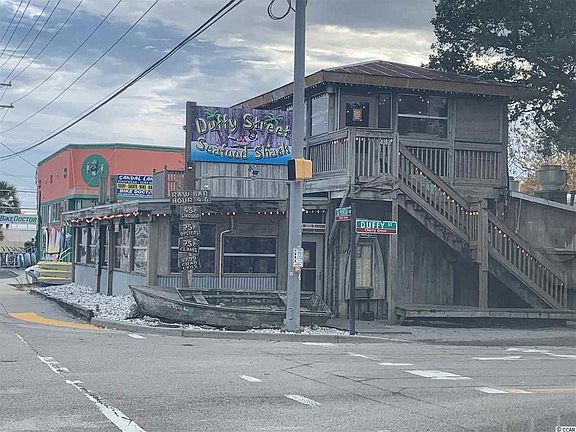 First time offering and up for sale is the original Duffy St Seafood Shack. Originally opened over 25 years ago, the restaurant is a staple in the community and a consistently high grossing business. Up for sale is the real estate, building and all FF&E. The Duffy St Seafood Shack name does not convey. Seller will allow a business with the same concept of seafood, steaks and chicken. The restaurant is located directly on Sea Mountain Hwy, just a few short blocks from the oceanfront, at a signalized intersection. Sea Mountain Hwy is the main thoroughfare for all visitors coming to the Cherry Grove Beach area. This is arguably one of the best restaurant locations in the area. Extensive renovations have been done throughout the years and the restaurant currently houses 131 seats. This location is mostly seasonal and does close during for the winter months. However, this is only because the sister restaurant is located just a few miles away. There could easily be enough traffic to maintain a viable year long business. The property consists of 2 lots and offers parking in the rear. Zoning is BC in the City of North Myrtle Beach. Impact fees have been paid saving thousands for a new restaurant. Total land area is 10,000 square feet (0.23 acres) Restaurant is approx 2000 heated feet and approx 3500 total feet including porches and patios.