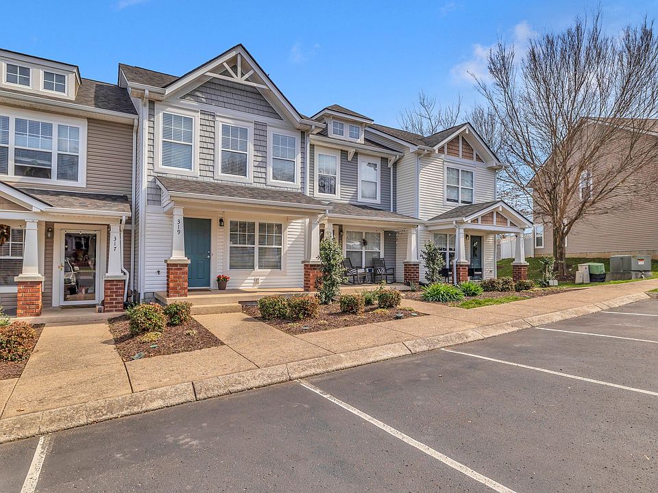 Spotless townhome! NEW HVAC 2023, private patio with vinyl fence, granite kitchen countertops with white subway tile backsplash, refrigerator, washer, dryer included. All hardwood downstairs, carpet upstairs, vinyl plank in bathrooms, walk in pantry, outside storage room. Room in front of home can be used as dining room or office.