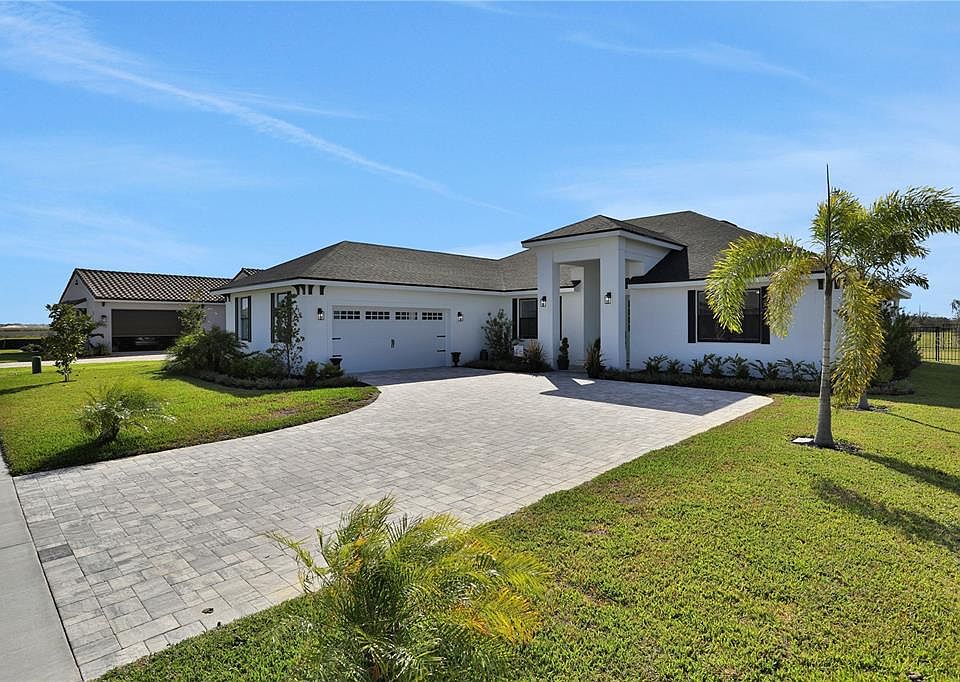 **LOOK NO FURTHER** This is the home you have been waiting for! Built in 2022 this custom home was meticulously designed and well kept! Open floor plan with an amazing kitchen fit for a king, marble backsplash, custom hood, double oven, quartz countertops, the list goes on and on. The master suite is remarkable, marble floors in the bathroom and walk-n-shower, double vanity, stand alone tub, walk in closet! The jack and jill bathroom is perfect for families! Covered screened in lani comes with a new hot tub just waiting for you to enjoy your piece and tranquility. The back yard is already fenced in and ready for you and your family to enjoy all that Florida has to offer! Not to mention this house is located in a gated community that comes with a beautiful club house, fitness center, with locker rooms and sauna, multiple tennis courts and pickle ball courts, 3 amazing pools, direct access to 2 large lakes each with their own dock and boat ramp with an additional smaller lake with a fishing dock, as well as a boat storage lot for all your toys. If that's not enough almost all of the furniture is included in the sale price and will convey to the new owners! Call now to set up a showing to see all this home and community have to offer!!