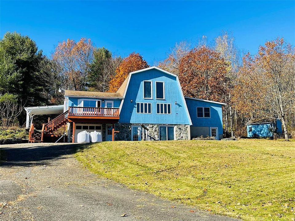 MOTIVATED SELLER!!! Willing and ready to make a deal. This beautiful and unique property sits on 11.5 acres. This land offers two ponds, two streams, trails, a greenhouse, a chicken coop, a horse stable, so many trees for privacy and four decks around the house. Inside is primed and ready for entertaining as well as relaxing. A huge eat-in kitchen offers a large island, a ton of counter-space and storage, and beautiful bay windows. A living room with a granite fireplace overlooks the property, and a large, comfortable movie theater / media room that could be converted back to a large 4th bedroom. Updated bathrooms, two coal stoves, and a dry, lower level with bonus rooms large enough to create an apartment or in-laws suite.