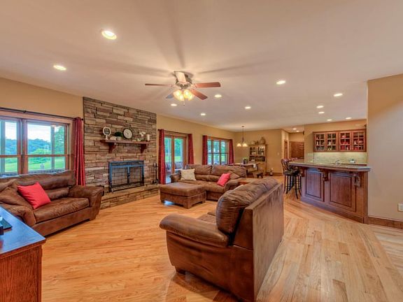 Absolutely stunning custom built brick home on 11.56 gorgeous acres in the heart of Northeast Tennessee. The quality and craftsmanship is apparent from the moment you pull up to this beautiful home. Great open floor plan with hardwood & tile floors throughout. Modern open living with huge kitchen with big island, granite counters, custom cabinetry and large walk in pantry. Lovely main level master suite with walkin closet and ensuite bath with tile shower. Upstairs you will find 2 large bedrooms each with their own bath and huge 4th bedroom/bonus space with tons of possibilities. You will love taking in the picturesque mountain views from the covered front porch and spending quite evenings on the large screened porch with its own fireplace. This home is sited well off the road, the cleared land offers ample possibilities and would be great for horses, farm/mini farm and much more. Offering tremendous privacy and stunning natural beauty this is a rare find. Quality built to be energy efficient, this home features a poured concrete foundation and is heated and cooled by a geothermal hvac system. There is great storage in the large garage and full unfinished basement. This is country living at its finest but just minutes to Johnson City, Elizabethton, Bristol and the South Holston River. Check this one out before it is gone. Buyer/Buyer's Agent to verify all information.