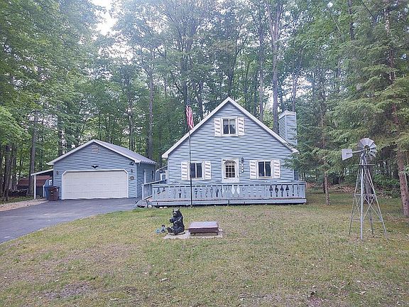 This is a well maintained Chalet with metal roof, crawl space, asphalt drive with plenty of parking. The house, garage and sheds are on two lots while there is an additional lot that is unattached to buildings and will sell with the house. (Room to grow) With a 14kw natural gas generator there's no worries about loosing power any time of the year. The Radiant heating system is a low cost ,low maintenance system that we've just loved. Lot of space for family to enjoy for year round fun whether it be on the water in the woods on the ATV trails or snowmobile trails. All of this surrounds this beautiful home. Call today for available showing