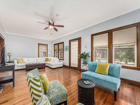 Craftsman style home with great architectural elements, just one block east of Schiller Park! 2300 sqft of functional living space with beautiful wood floors and woodwork throughout All rooms are generously sized with lots of windows to bring in the sunlight. Large Living Room and Dining Room are perfect for entertaining! The kitchen has beautiful soapstone counters and stainless steel appliances. 2 bedrooms and a full bath on the main floor. Huge Master bedroom with walk in closet, additional bedroom, full bath and laundry on the second floor. Very large unfinished basement for great storage. The outdoor space is amazing! Huge front porch, lush backyard with privacy-fenced, deck, patio, and oversized 2 car garage.