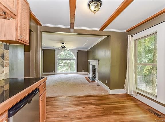 Charming bungalow on almost an acre lot! Relax on the porch overlooking amazing view with so much privacy!Enjoy the view from the front porch which faces Belton where the driveway could be restored or rear entrance from Tomberlin. Master bedroom has been renovated into a deluxe master suite with sitting area and half bath. Kitchen features solid oak cabinets and stainless appliances. Wonderful 24x14 detached workshop with single carport. Close to the US National White Water Center, I-485, I-85 & minutes from Charlotte. Lots of charm and personality await in this bungalow, don't miss it!