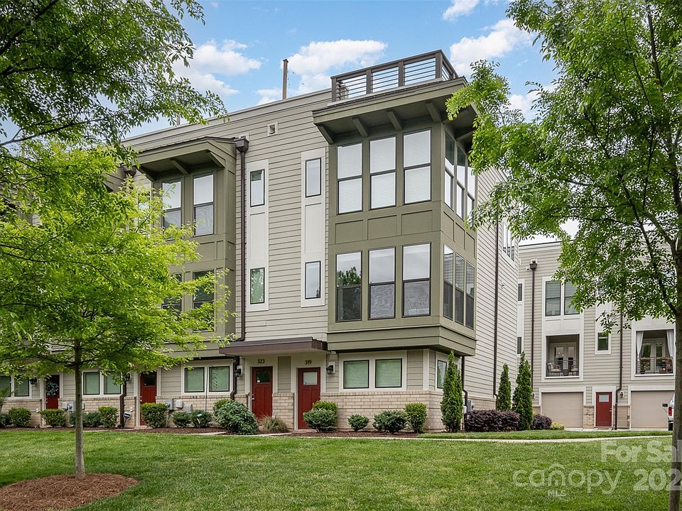 **CLOSING COST CREDIT up to $7,500 when using preferred lender!** Stunning luxury end-unit with SKYLINE VIEWS and rooftop terrace! This well maintained, like new end-unit offers open concept living with both SKYLINE VIEWS and PRIVATE wooded views. Kitchen features upgraded appliance package (range and dishwasher), range hood, large island, and stainless steel appliances. Enjoy the abundance of natural light flowing into the living room and primary bedroom from the multitude of oversized windows. The primary bathroom boasts dual vanity sinks and a tiled shower, while the secondary bedroom features its own private en-suite bathroom. Embrace outdoor living at its finest while unwinding on your rooftop terrace, enjoying breathtaking views of the Charlotte skyline. Located just minutes away from restaurants, breweries, and all the vibrant attractions of uptown Charlotte, this is truly a one-of-a-kind opportunity! Don't miss your chance—you won't find another property like it!