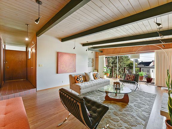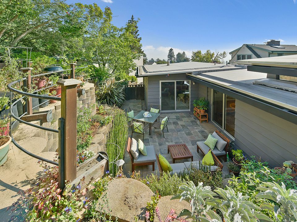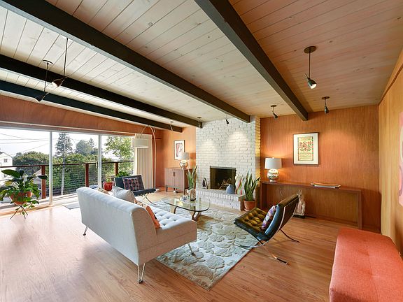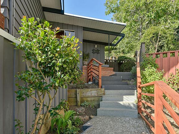 Extensive renovations have restored this beautiful mid-century modern home into a turnkey property. Systems, structure, landscaping, interior fittings including lighting, floors and paint, were all updated with high-quality designer materials. Classic mid-century details include refinished hardwood floors, mahogany-faced kitchen cabinets to match the refinished mahogany walls in the living room, and recently installed sliding doors that allow for additional light and easy indoor/outdoor flow. Surrounded by drought resistant landscaping, the upper patio provides views of the San Francisco skyline. Located in the peaceful hamlet of Kensington, with its mid-block pedestrian paths and convenient shopping village, it's close to UC Berkeley, the El Cerrito Shopping Center and BART station.