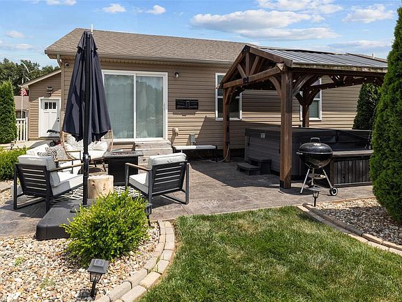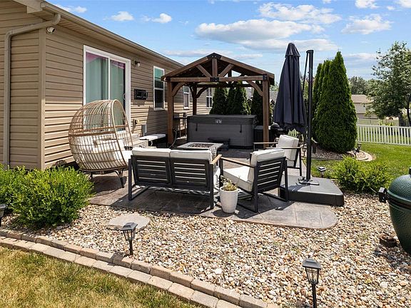 Outside, you'll appreciate the finished garage, a convenient sprinkler system, and a secure fence. Enjoy outdoor living on the stamped patio, and make use of the utility concrete pad off the garage, perfect for storing trash cans and lawn equipment. The meticulously landscaped yard boasts lush plants and greenery, creating a serene outdoor oasis.