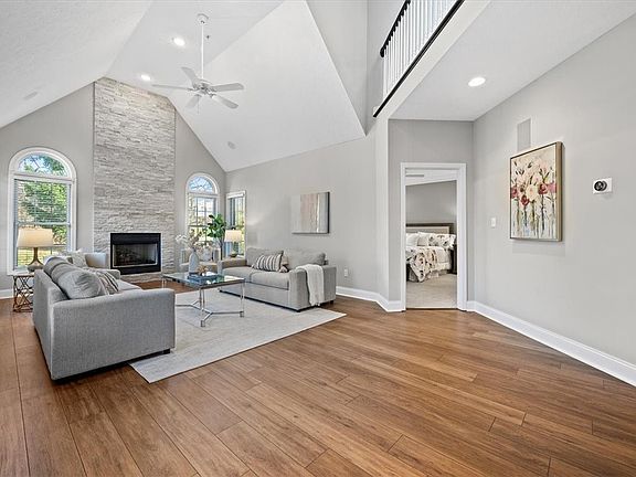 Don't miss a rare opportunity for one level living with a private entrance facing the trees! You’ll feel at home the moment you enter the sun-soaked space with all new flooring thru the main level. The kitchen boasts granite counters, including breakfast bar for morning coffee, updated SS appliances, & ample cabinets for every gadget. Kitchen flows into the dining space which flows into living room. Plus the huge family room & powder room make having guests a pleasure! Main level also features bedroom suite with walk-in closet & spa-like bath with double bowl vanity & bonus vanity countertop! Upstairs is a loft space perfect for a hobby nook or office. Plus two other large bedrooms with en suites. Your generous patio is a private oasis with room for grill, table set, & container garden. Hide away for a quiet night reading with wine, or plenty of room when you want to entertain! A ramp makes door from garage accessible- enjoy low maintenance living minutes from amenities & the highway.