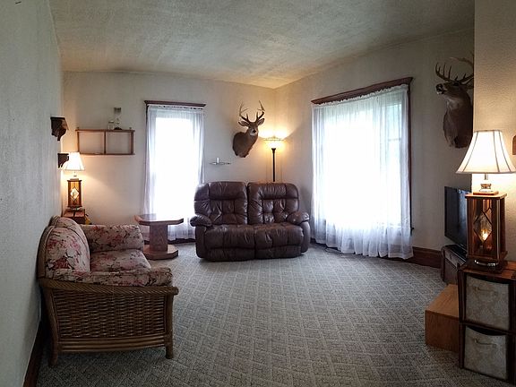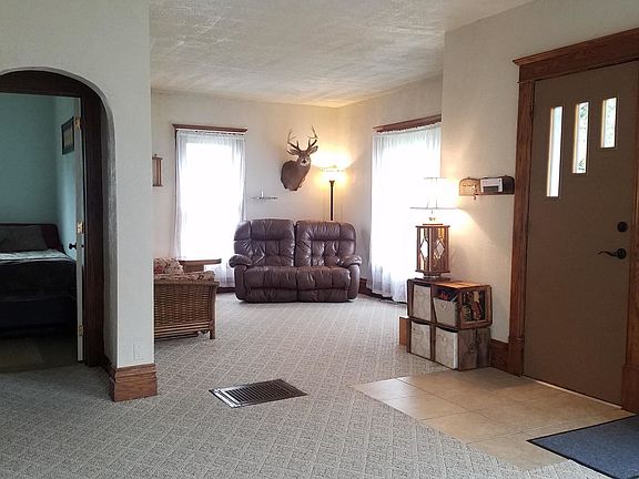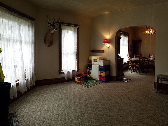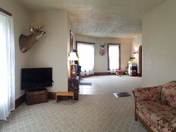 Traditional 2 story w/ natural woodwork & inviting front porch awaits a new family. Inside you will find 4 bedrooms total; 3 upstairs. The first floor owner's suite has its own private bath. There is a large living room w/ additional parlor, formal dining room, country kitchen, main level laundry & an expansive family room on the first floor. The patio door from the family room leads to a large deck overlooking your backyard w/ a carriage house and enough parking for 2 cars, a potting shed which would make a great Tiki bar, hot tub room or even both. There is also a nine-hole miniature golf course w/ a beautiful & humongous oak tree in the center that measures over 68 inches around. The house roof is metal and only 1 yr. old. All this and located in the Historic Section of Bellevue.
