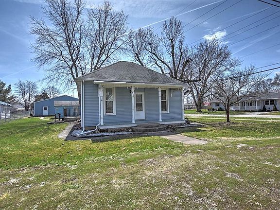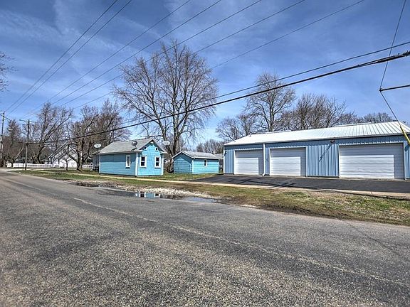 Mechanic's dream! Huge 40'x48' Morton building with 3 overhead doors - concrete floors, heated, water and a urinal! If that isn't enough space there are two additional sheds on site - 19'x12' and 28'x12'! The house has a covered front porch, replacement windows, laundry on the main floor, and no carpet! All of this sits on large 0.35 acre lot with a portion of it fenced off. Furnace & AC new in 2007; Roof new in 2006. House qualifies for 0% interest rural development loan.