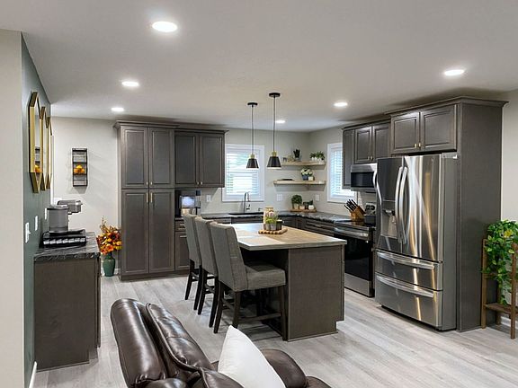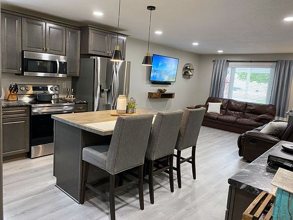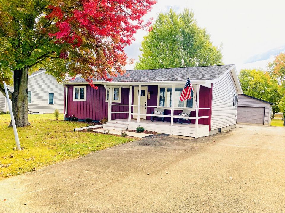 Charming newly renovated home! This freshly redone 3-bedroom, 1-bathroom ranch home with a 2-car detached garage is located on a quiet street near the edge of town. New features include a custom kitchen with island and coffee bar, LG ThinQ appliances, concrete patio, luxury vinyl plank floors in common areas, tile shower with tub, updated lighting throughout, windows and treatments, exterior doors, soffits, gutters, fascia, water heater, electric and plumbing updates, siding and roof on home and garage. The unfinished basement includes a washer and dryer (purchased in 2020) and a workout area including cushioned rubber floor tiles, ProForm Pro 2000 Treadmill (purchased in 2021), and a Sunny belt drive exercise bike (purchased in 2020). The full basement is perfect for extra storage or to finish in the future. This low-maintenance home is the perfect place to host - indoors or out.