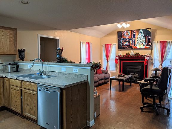 This is one to view! The floorplan features an open kitchen, family room & dining room area, separate living room, a bedroom wing, and a utility room near the garage entrance. There is a great front porch for rocking & relaxing! The 2 car garage has an additional area for storage. Private back yard with sliding door into the family room. The home is in move-in condition---just needs you to make it your own!