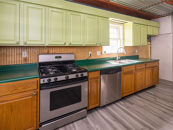 Spacious, cozy, 4- bedroom family home is located in downtown Saegertown. The first floor bedroom en suite is large with plenty of closet space, a fireplace in the living room and there's new laminate flooring in the dining room, kitchen & one of the bedrooms. Stainless steel gas range & dishwasher in the kitchen with an eat- in counter space. Extra wide stairwell upstairs to the three additional, larger bedrooms and a full bathroom. The laundry room is located in the full, unfinished basement. The home needs a new coat of paint and, with a solid offer, the seller is willing to give an allowance for buyer to put towards updated flooring. The fenced- in backyard has a storage shed. Check out the house on Saturday, June 24th from 10:00- noon at the Open House or call for a personal tour.