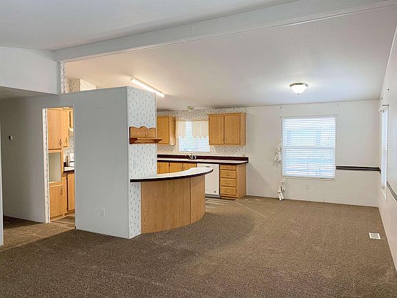 Newer, very clean manufactured home with A/C, Full Sprinkler system and privacy fence, New Carpet and LVP FLooring in great neighborhood. Open floor plan with vaulted ceiling and ample sized dining area. Master bedroom has big walk-in closet and walk-in shower. Additional full bath too. All appliances stay Single detached garage has metal roof, fenced yard with garden spot and alley access. Good cents home. Information from assessors.