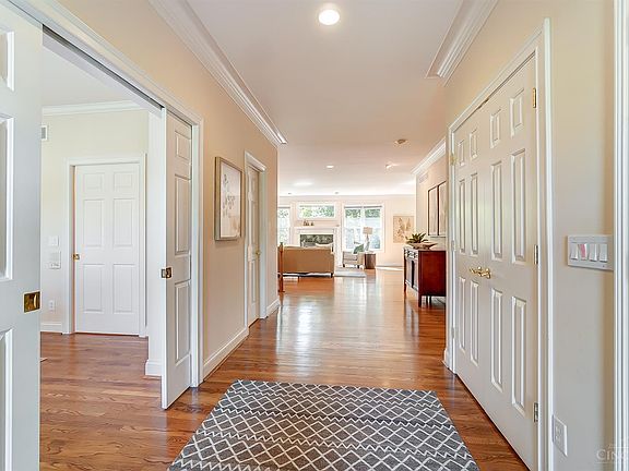 All brick home on cul-de-sac with walkout lower level on .6 acre wooded lot. Attractive, Universal Design ensures accessible one floor living, no steps. Open concept with ample natural light. Gorgeous hardwood flooring, first floor primary bedroom and ensuite. Flexible floor plan includes two additional bedroom suites or 2nd BR and private study. Abundant storage. Roof 2016, Sprinkler system 2016, gutters 2017, HVAC 2018