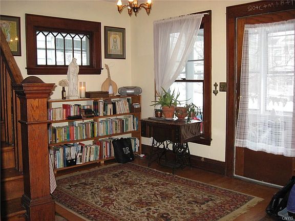 American foursquare architecture typical of Tipperary Hill with beautiful woodwork and hardwood floors. Gardens with perennials and fruit trees are in a quiet and private backyard.