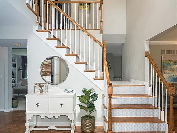 Stunning 2 story stylishly appointed throughout in a sought-after school district! Two story foyer with wood T staircase leading to formal dining room. Flex room with French doors can be used as an office, toy room, den, & so much more. Family room features a woodburning fireplace flanked by floor to ceiling bookshelves, triple bay window & adorable reading nook. The breakfast room leads directly to the vaulted kitchen with grey cabinets, custom shelving (that stays in both rooms), & center island with cement countertop. Primary bedroom suite with large walk-in closet, subway tiled featured walls in bathroom, separate tub & shower & double sinks. Upstairs features 3 other lovely bedrooms & 2nd full bath. Enjoy coffee on the paver patio located off the breakfast room while the kids play on the swing set (stays) or work in your flowers & veggies in the raised garden. Other features include main floor laundry, new siding (21), new water heater (22), new HVAC (19), and new roof (16).