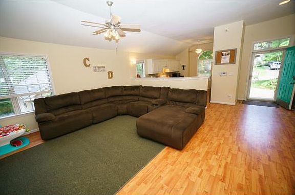 Welcome home to this beautiful one story home with high vaulted ceilings throughout! You'll love the open concept and kitchen with tile backsplash. Don't miss the fenced backyard with a new large deck! Walk in closets in all bedrooms and deep windowsills. Roof to be replaced June 2017 and ready for you to move in!