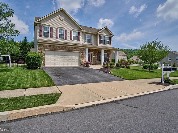 Welcome to Woodbridge Development halfway between York and Harrisburg..Former Builders Model with numerous upgrades throughout this Two Story Home on corner lot with INGROUND HEATED SALT WATER POOL, Fenced-in Yard, Shed, Custom Play house...over 3300 sf...Custom window treatments throughout home Built in speaker system on each floor...Security System not hooked up... Stone and Vinyl exterior with covered front porch leads to 2-story Open Foyer with hardwood floor...half bath with pedestal sink and hardwood floor...Formal Dining Room surrounded by windows with hardwood floor...Gourmet Kitchen w/hardwood floor, Island w/breakfast bar with hanging ceiling lights,oversized cabinets with corner sink surrounded by windows, corian countertops, recessed lighting, pantry overlooking SUN ROOM w/vaulted ceiling,hardwood floor,surrounded by windows.middle window with half moon and sliding glass door leading to 20x13 trex deck overlooking pool with outside lighting...vacation in your own home.....Family Room off Kitchen w/gas fireplace....Spiral Staircase leads to 2nd floor ....Huge Owner Suite with speaker system, ceiling fan,walk-in closet and Master Bath with jacuzzi tub, separate shower,tile floor and his and her vanity....2nd full bath....3 additional Bedrooms all with ceiling fans and 2 with walk-in closet......Finished Lower Level Game Room w/surround sound and 3rd Full Bath.....View this home now...you won't be disappointed.....