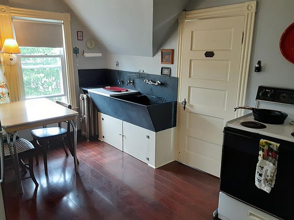 3rd floor, two bedrooms; back bedroom through bathroom. Unfurnished. Hardwood floors, great neighborhood, original soapstone sink. Newly remodeled bathroom. Owner-occupied building. Lots of closets and storage space available in basement. Street parking. Renter pays gas and electric average $100 a month for one person. Landlord pays water/ sewer. Private back deck. Available July 1, one year lease required. Must meet applicants in person. No virtual tour available. No calls please No smoking of any kind permitted on premises. Street parking (off street available during parking bans), no pets