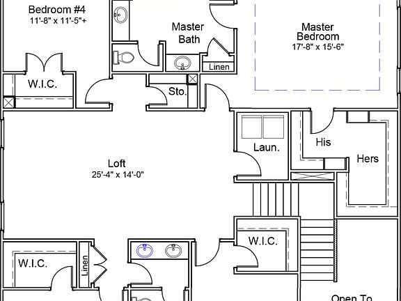 The Warwick is a two-story home with five bedrooms and three bathrooms. This home features a grand two-story entrance, formal dining room, butler's pantry, and a guest suite. The kitchen with bar top seating, island, and prep space is open to the dining room and spacious family room. The upstairs primary bedroom includes a private bath and dual closets, separate garden tub and walk-in shower. Three secondary bedrooms, all with walk-in closets, are also located upstairs along with the spacious loft and laundry room.