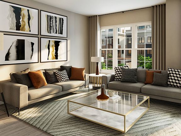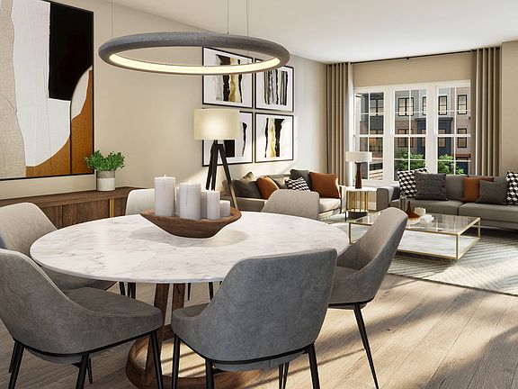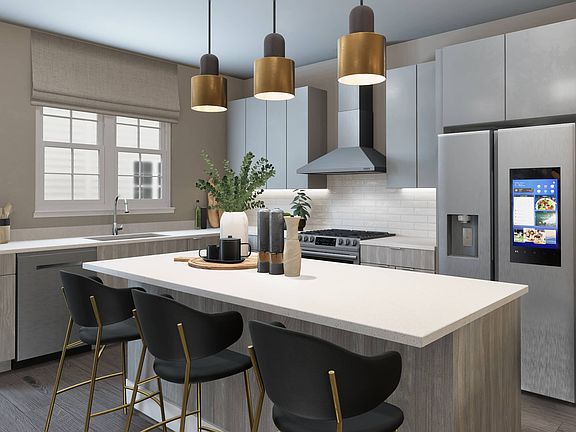 The spacious Douglas model features sophisticated design, luxury finishes, open floorplan, chef's kitchen with large island, entry-level home office/flex space, and 2-car garage parking. This floorplan also includes the option to add a loft level with rooftop terrace.
