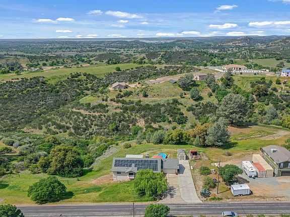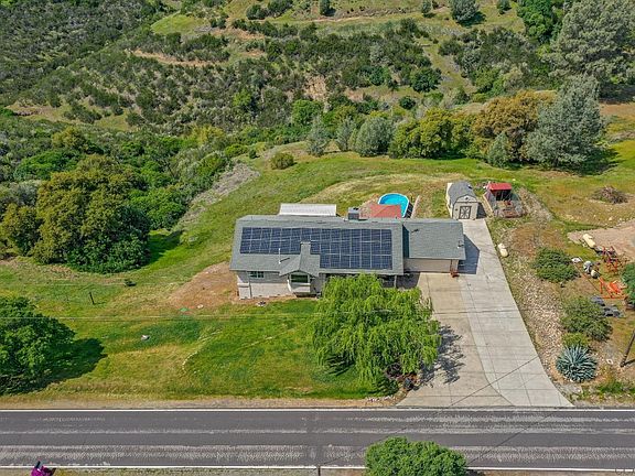Gorgeous sunsets and panoramic views from this amazing 3.1 acre ridgetop location surrounded by custom built homes. The homes exterior consists of stucco siding, composition roof, owned solar system and covered back composite deck with stunning views. Added bonuses are the above ground pool with composite deck and covering, storage shed with power, fenced garden area and concrete driveway with RV parking. The interior has a very functional floorplan including vaulted ceiling and pellet stove in the living room, large dining area with back deck access and kitchen with tile counters and SS appliances. The master suite has a vaulted ceiling and back deck access while the master bathroom features two sinks, stall shower and walk-in closet. On the opposite side of the home you will find a hall bathroom and two guest bedrooms. Inside laundry room leads to the two car attached garage plus there is storage under the home. Hurry, this home has so much to offer, it won't be on the market long.