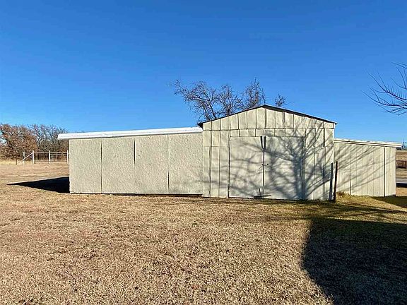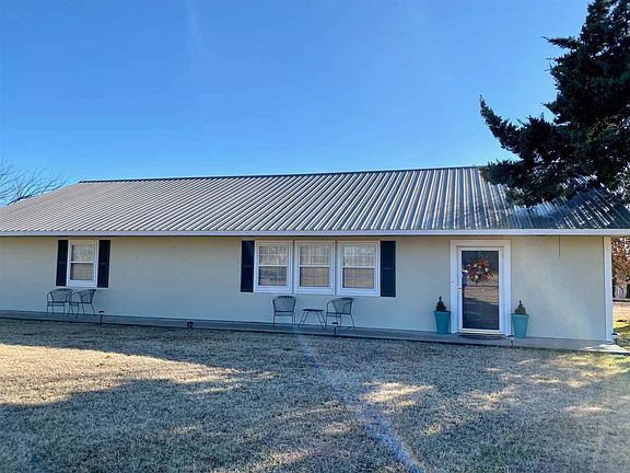Move in ready home on 1 acre fenced lot. This home offers metal roof, floored attic, vinyl windows, new central air unit and lifetime foundation warranty. Huge, front living area opens to formal dining area and kitchen. The living area offers high ceilings and large double storage closets. Large kitchen offers breakfast bar, cooktop, new single oven, pantry and tons of nice cabinets. Master suite offers double closets and tiled step in shower. Second living area/office offers utility hookups, built ins and backdoor access. This homes offers full front covered patio with county views, 20x20 shed, double carport parking and shop/outbuilding. This home is approximately 10 minutes from town and offers rural living with minimal upkeep.