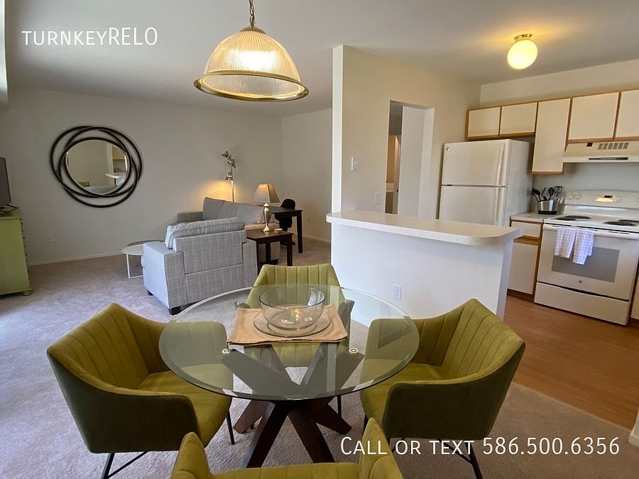 Furnished-Flex Lease Apartments. Long or Short Term. Gorgeous community in Rochester Hills. Our Proven process works. We have it down to a science. SIMPLE. SMOOTH. FLEXIBLE. Posted Address is nearby the actual address. S/W corner of Butler and Adams. Just Bring Your Suitcase (TM). One payment covers everything including TV/Wifi, cookware, linens and everything else. Corporate and Individual leases are welcome. CLEAN Guarantee: If you don't agree that your accommodations are clean upon arrival we will refund your cleaning fee. ALL INCLUSIVE RATES Fully furnished/Turnkey. Utilities, TV, Wifi, Parking included. Month to month. You don't have to know your departure date. $175 cleaning/prep fee These are larger than average floor plans. Many of the features described below pertain to the renovated apartments only. This secluded, private community with 72 acres of impressively landscaped grounds is perched atop scenic hills with impeccable views throughout. Enjoy a spectacular clubhouse featuring a resort style swimming pool, spa, saunas, a Cybex equipped fitness club, and an internet cafe with cozy lending library, all featuring free WiFi. Apartments feature private entries, washer and dryer in unit, Stainless steel appliances, some with renovated interiors, designer kitchen & bath, Quartz counter tops, and gas fireplaces.