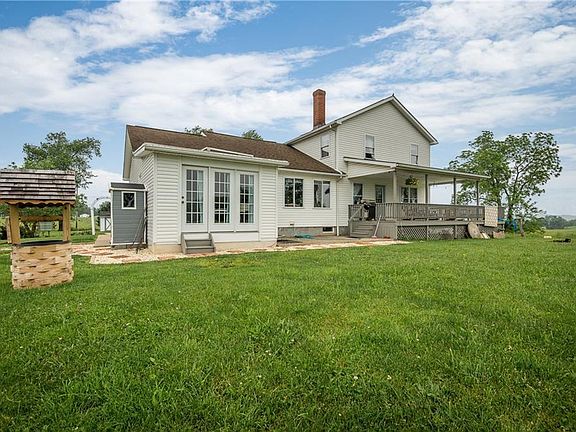 Spacious 2 story, 5 BD, 2BA, home in the country on 8.0 acres with gorgeous panoramic views from the backyard! Custom Amish-built home has solar energy with option to convert to electric at sellers expense with an acceptable offer, 2 wall propane heaters, and 2 woodburners. Large, Charming, Country Kitchen, Sunroom overlooking the grazing horses in the back field could also be a formal dining room. Large and spacious living room. Master Bedroom and Bath on the main level. Additional living suite in the walk out lower level. Outbuildings GALORE! 24x38 det. garage, 10x16, 8x8 plus 17x28 sheds, 40x40 pole building with 8x40 lean-to and 12x28 pole building. Horse barn with 3 stalls could have more. Propane refrigerator, stove, 2 woodburners, and newer larger solar are negotiable witn an acceptable offer. Country living at its best!