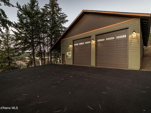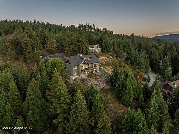 UNBEATABLE VIEW OFF LAKE COEUR D' ALENE CLOSE TO TOWN AND WITH A SHOP! 4/4 + 2 1/2 baths, 4148 sq ft, 2.99ac, built in 2007. The property features hickory floors, solid core doors, and cedar siding. Inside, the great room boasts 18' ceilings and a fireplace, while the kitchen includes high-end appliances with a six-burner dual-fuel range, granite counter tops, and butler's pantry. The home offers four bedrooms, each with its own en suite bathroom, plus two additional half baths. The main floor master suite offers lake views and a spacious en suite, large shower, jetted tub and oversized master closet. Additional amenities include a daylight basement, exercise room, central vacuum system, fire suppression system and a two-car attached garage. The property also includes a 60x40 shop with a 10' lean-to and is heated for year round use. Located on a private lane in a quiet driveway, it offers a quiet setting while remaining close to town with a shop and a view that is hard to find!
