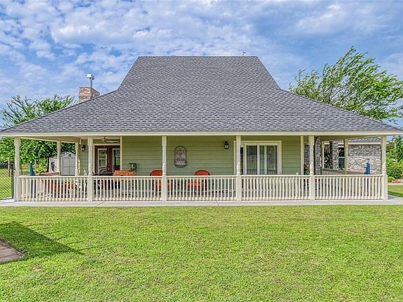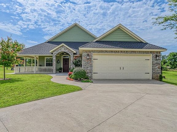 Beautiful home on 1 acre mol ~ some lake view of Shawnee Twin Lakes across the street - better when not as much foliage ~ wrap around front porch ~ gated entry with remote controls ~ completely fenced with black chain link fencing ~ cross fenced as well~ 2 storm shelters and workshop / storage building (16 ft x 24 ft with loft) ~ 2 bedroom home (2nd bedroom is being used as a study) ~ kitchen has custom white and glazed cabinets with granite countertops and an island ~ living / family room has a fireplace ~ master bathroom has a Jacuzzi jet tub plus a shower and utility area right there to go straight to your closet with your clothes ~ feel like you have your own personal retreat ~ this one is definitely a beautiful home with a manicured yard and porches for relaxing ~ make your appointment to take a look at this one!